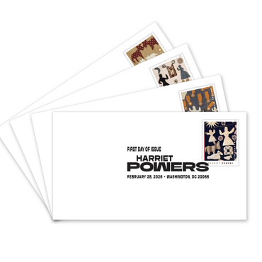 Honor a quiltmaker whose stitched works are celebrated as masterpieces of American folk art and storytelling with the Harriet Powers First Day Covers. Each collectible envelope in the set has an affixed Harriet Powers Forever® stamp canceled with the official First Day of Issue postmark.